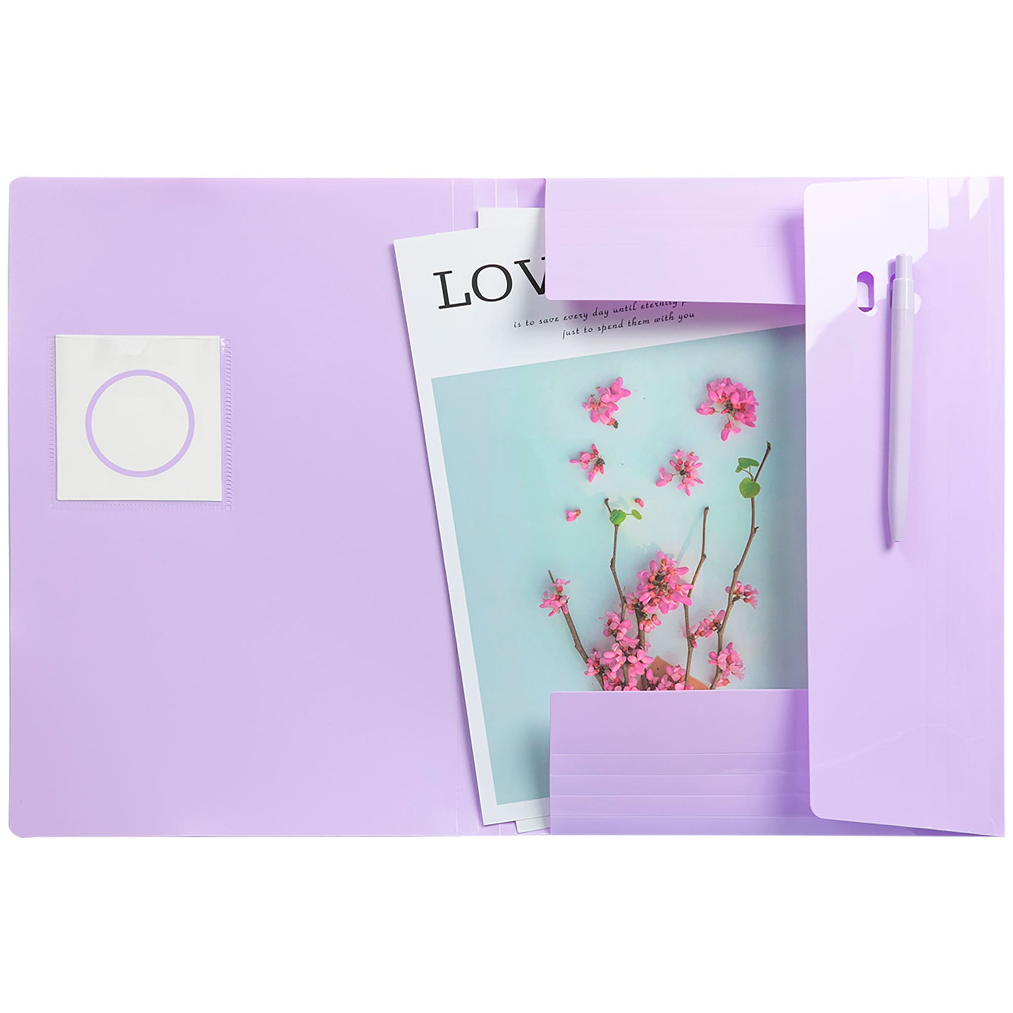 Este folder en colores pastel, es perfecto para guardar tus documentos de manera segura, cuenta con un compartimiento interno ideal para colocar los archivos sin necesidad de perforar tus hojas.