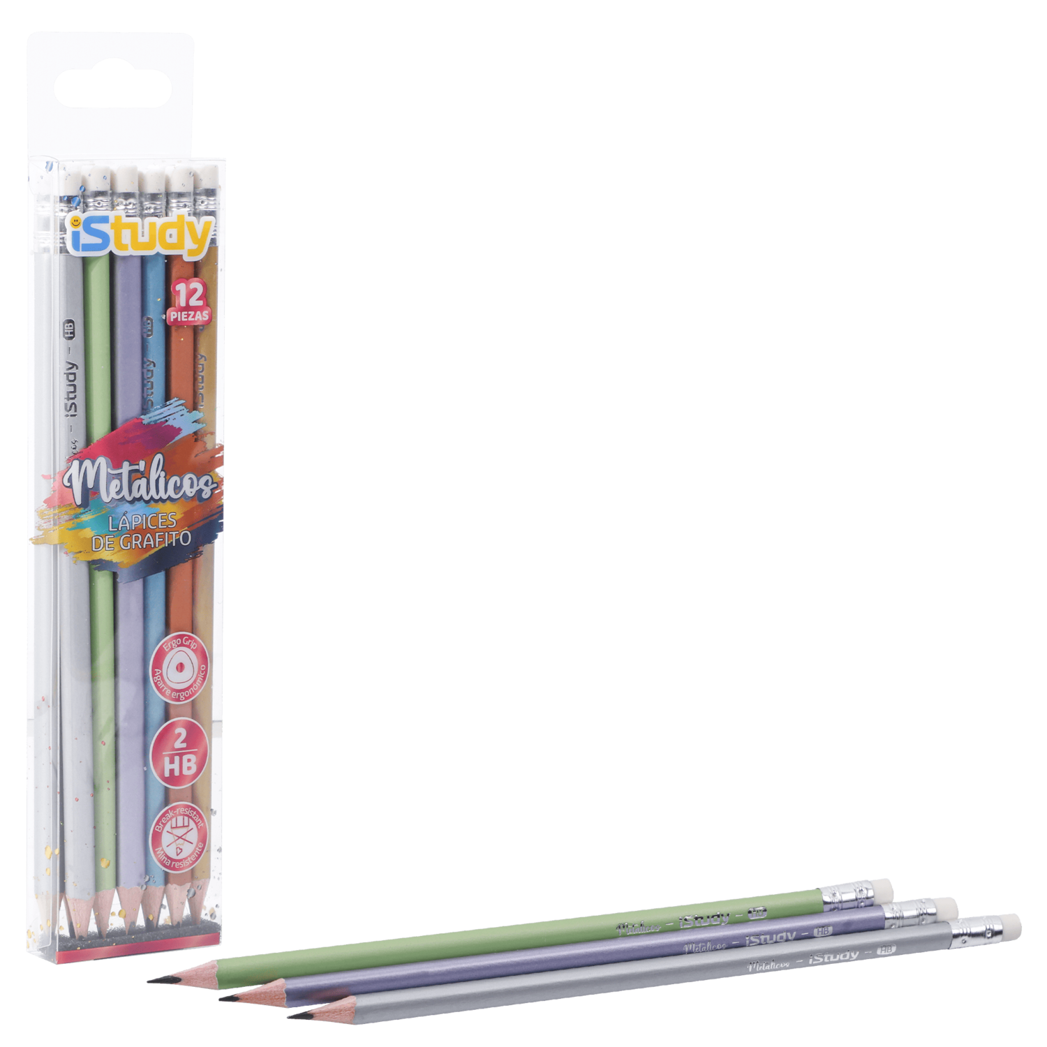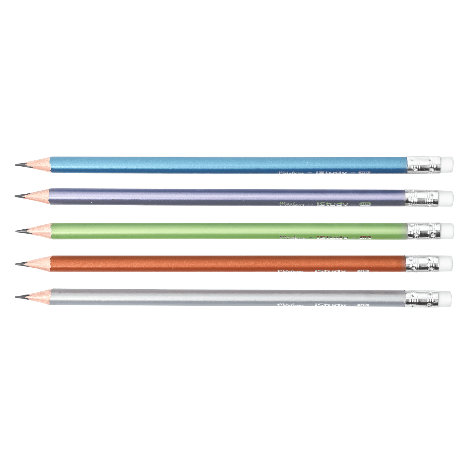 Nuestro set de 12 lápices de grafito es una combinación de estilo y funcionalidad, en colores metálicos.